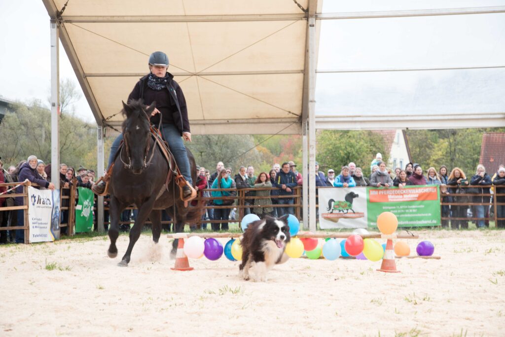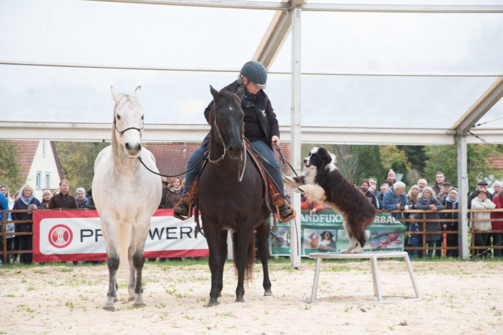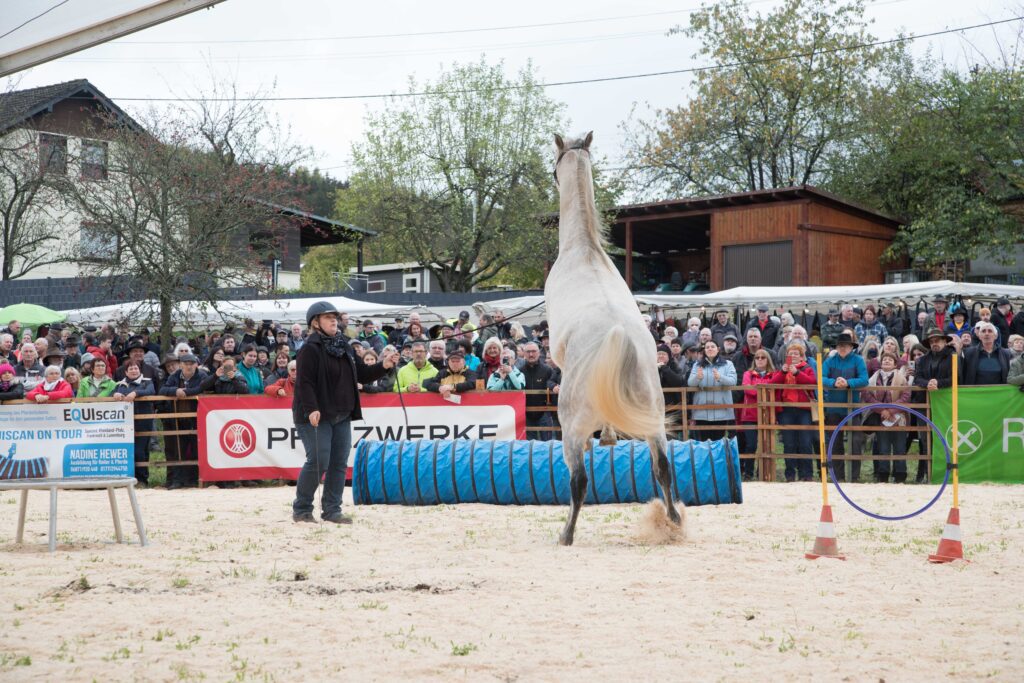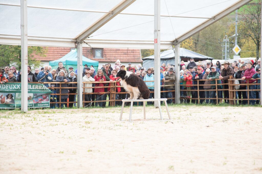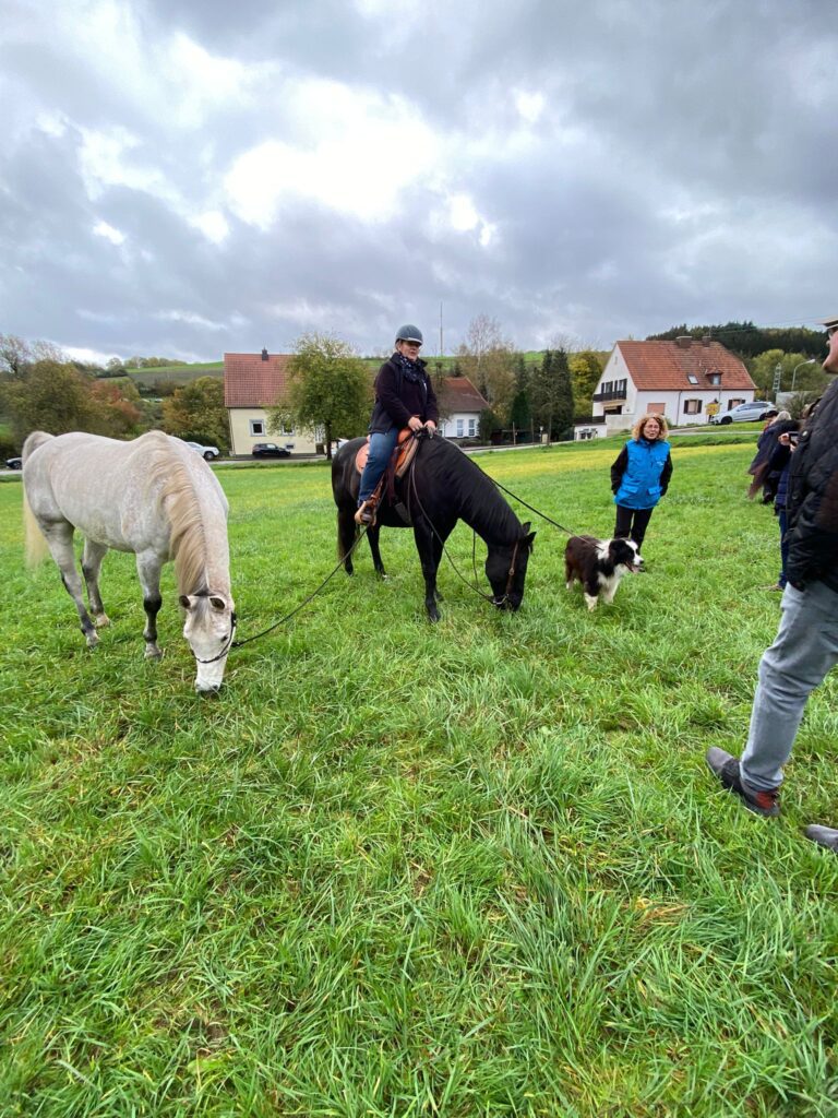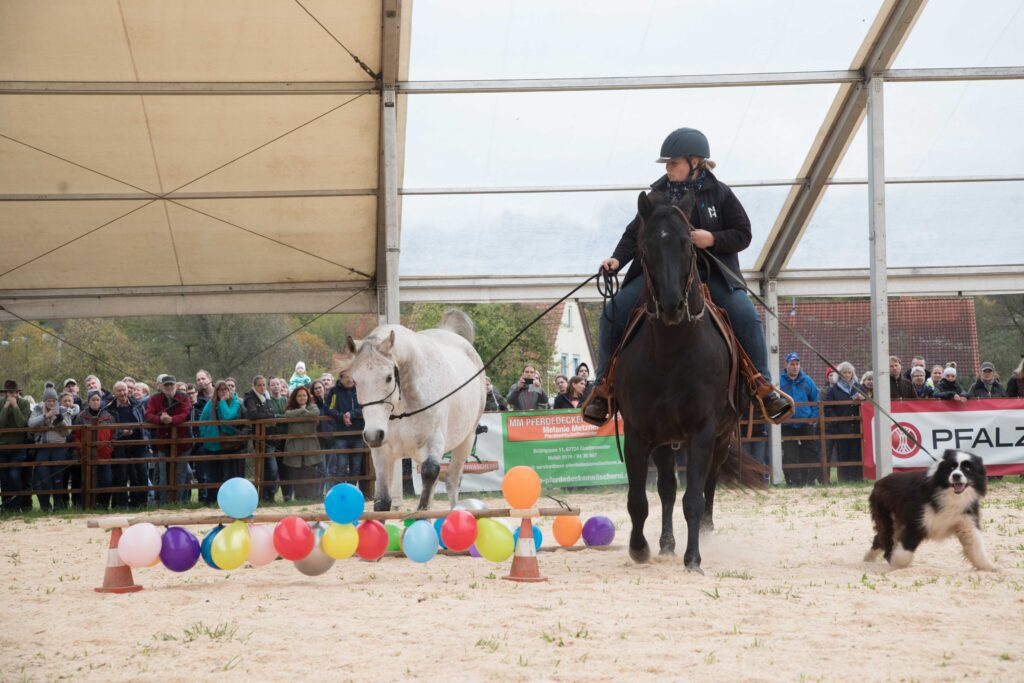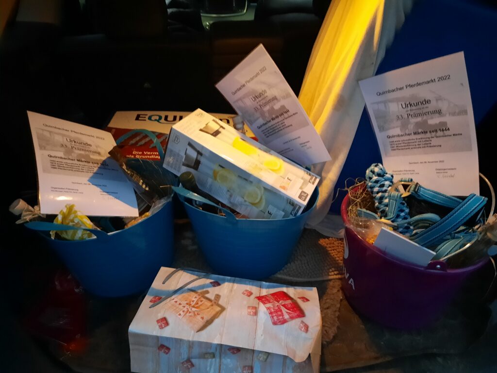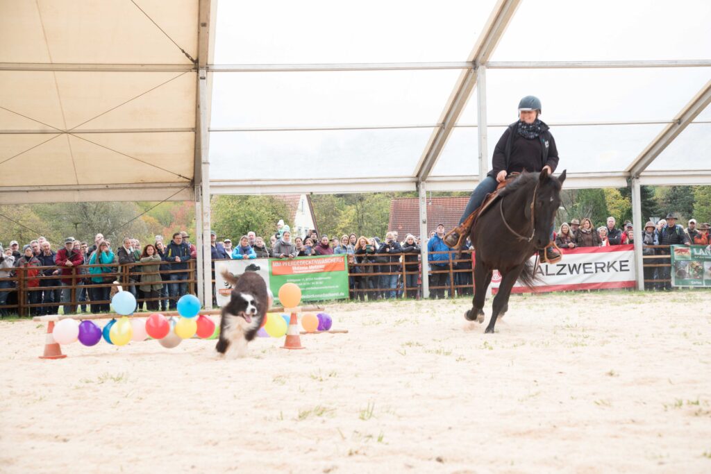 Viele Jahre machte Corona dem Pferdemarkt den Gar aus. Doch 2022 sollte er wieder stattfinden und die VFD-Saar war mit dabei. Im Morgengrauen baute das Messeteam den Stand auf, der zum Besuchermagnet und zum Treffpunkt für die Mitglieder werden sollte. Die schlimmsten Befürchtungen auf Dauerregen bestätigten sich nicht, der Wettergott meinte es gut mit den Quirnbachern. Im nu war die ganze Straße mit Ständen zugebaut, meistens Klamotten und anderer Klimbim. Aber hinter unserem Stand tummelten sich schon früh einige Pferde und es wurden immer mehr. Viele wollten zur Prämierung und so wurden Shetties, Haffis, Norweger, Warmblüter, Kutschpferde, Kaltblüter, Araber, QH, Paint und viele mehr dort prämiert. Zwischendurch sorgte ein umfangreiches Schauprogramm für Abwechselung. Der Höhepunkt des Schauprogrammes war die Schaunummer von Nadine Hewer, die eindrucksvoll die Arbeit mit Pferd und Hund zeigte. Das Publikum war begeistert.