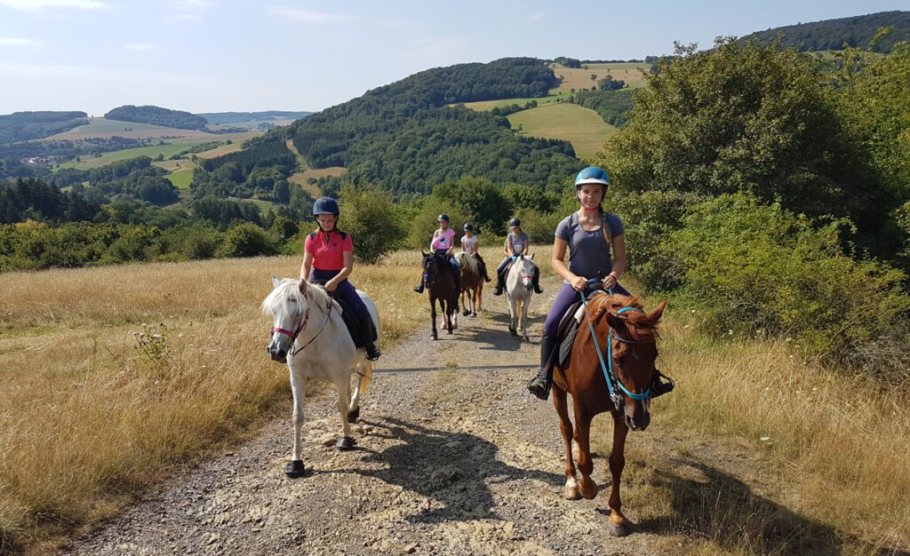 Wer am Potzberg reitet, muss unbedingt einen funktionalen Hufschutz für sein Pferd haben. Die Wege sind idyllisch und die Aussicht ist berauschend, das Geläuf ist hart und steinig.