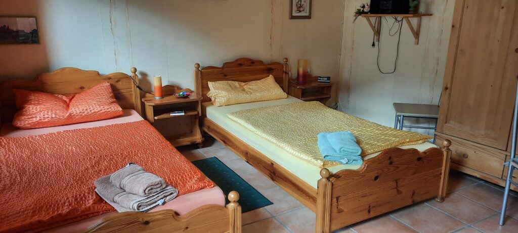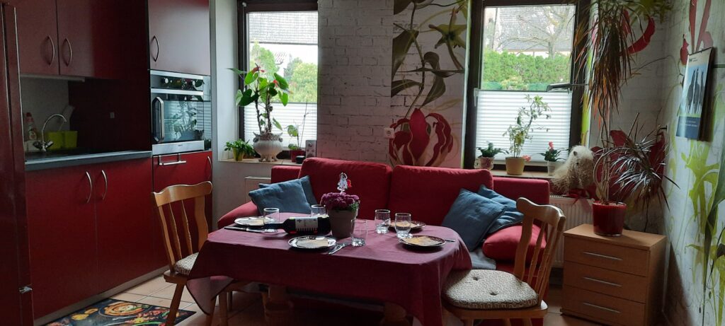 Bei schönem Wetter kann auf dem Hof draußen gegessen werden, doch es gibt ebenso Ausweichmöglichkeiten, falls es regnet oder zu kalt ist. Das Frühstück richtet Gaby selbst her und es lässt keine Wünsche offen. Für die Verköstigung am Abend sorgt entweder der Grillmeister des Hauses oder es wird ein Bestell-Dienst in Anspruch genommen. Natürlich kann man auch einen Ausflug zum Essen machen.