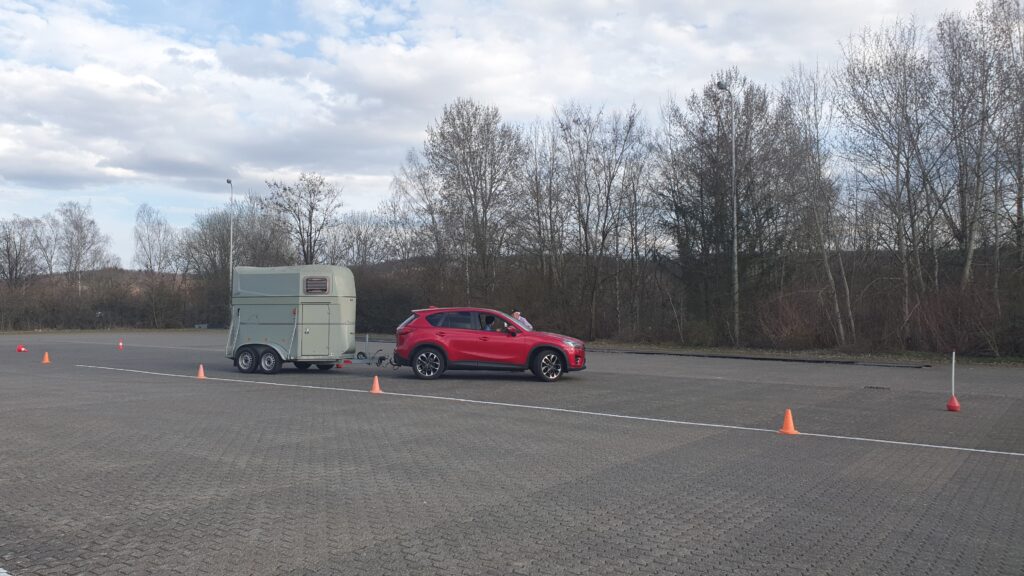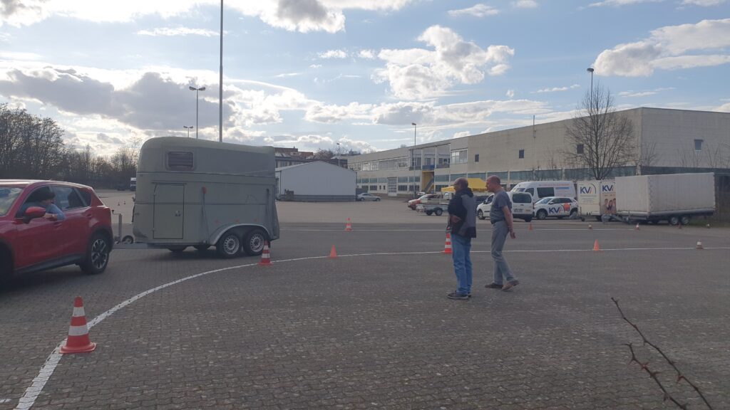 Wenn es auch etwas Geduld erforderte, so erfüllte sich letztlich mein Wunsch nach einem Hängerfahrtraining. Vor Jahren hat eine Freundin an einem solchen Kurs teilgenommen und die fuhr danach rückwärts mit Hänger durch die ganze Ortschaft. Das wollte ich auch können!