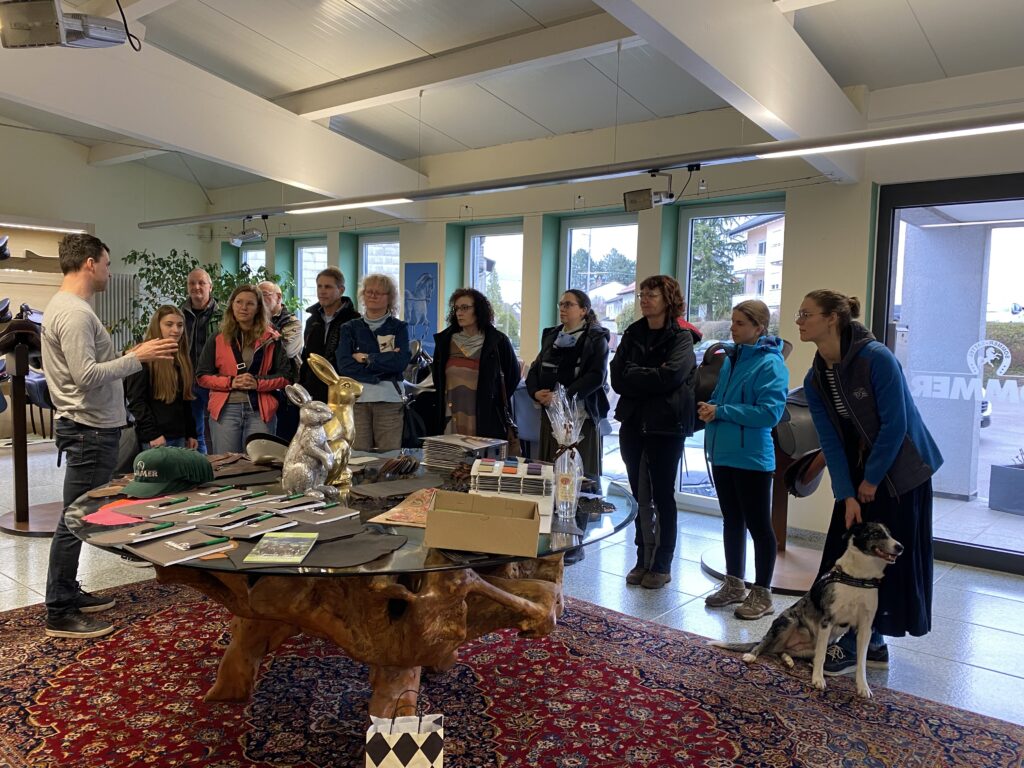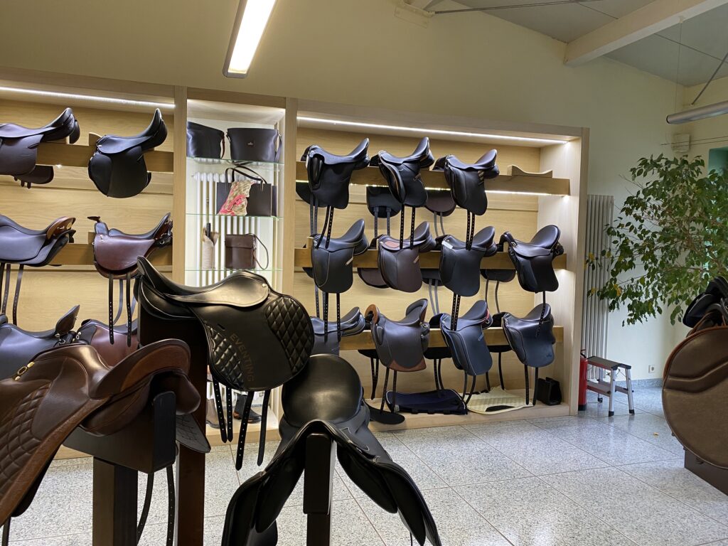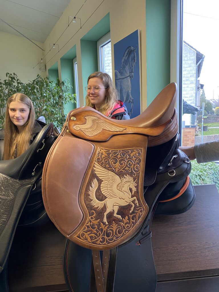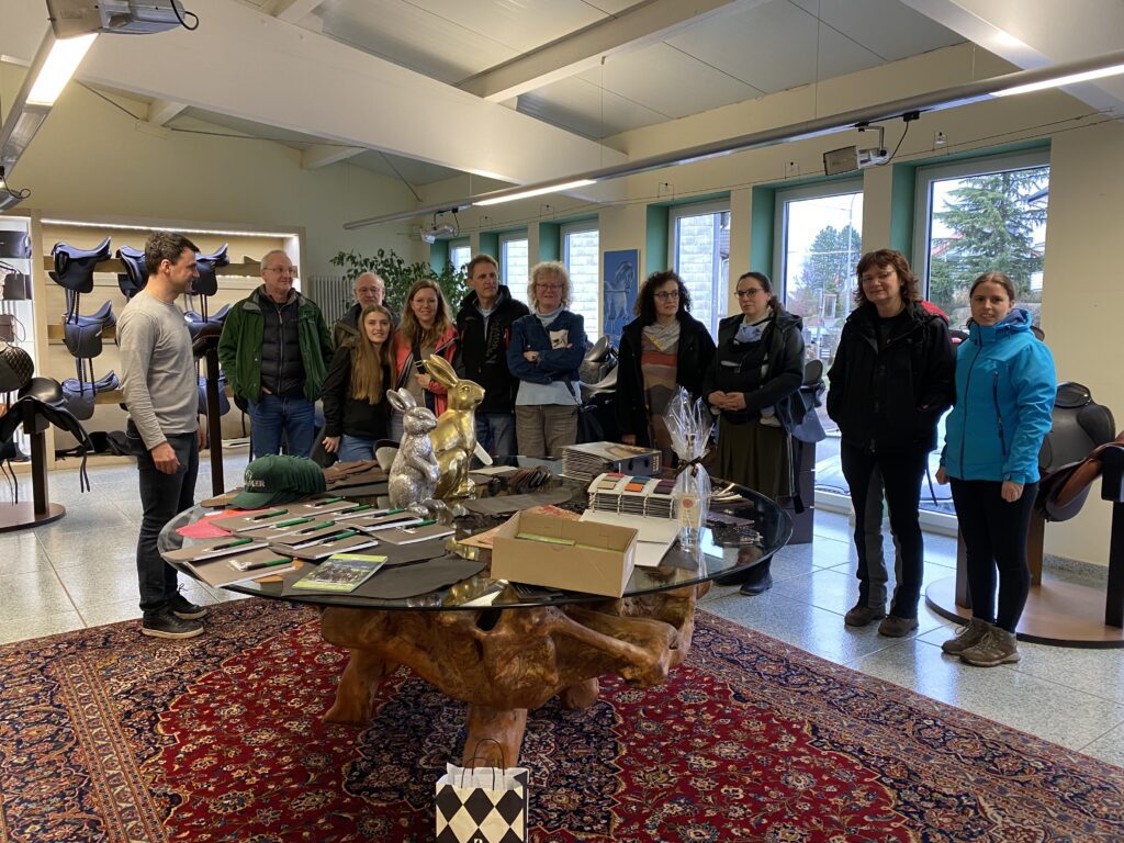 Zuerst trafen wir uns in der Ausstellung der Sattlerei und durften viele wunderschöne Sättel und Zubehör anschauen. Wir staunten über ausgefallene Farben und Formen und welche Vielfalt Firma Sommer anbietet. Die Erklärungen von Herr …. waren sehr informativ, er beantwortete alle unsere Fragen geduldig.
