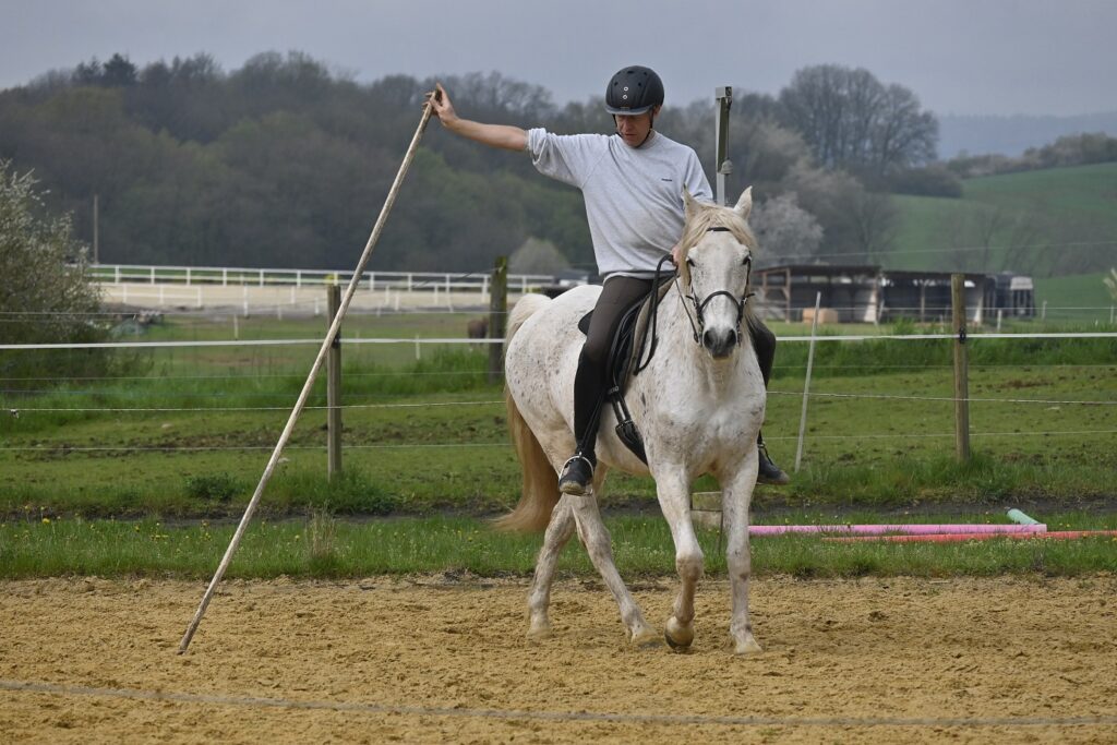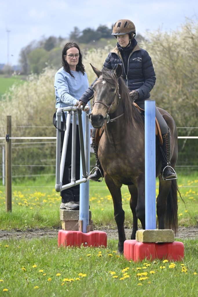 Doch die Trainerin Claudia Metting bot an, den Kurs auf ihrer eigenen Anlage, dem Birkenhof in Schmelz, durchzuführen – auch mit weniger Teilnehmern. Hierdurch gab es zusätzlich die Möglichkeit, bei schlechtem Wetter in eine Reithalle ausweichen zu können. Nach Rücksprache mit allen Teilnehmern, stimmten fast alle dem Ortswechsel zu. Und so ging es für vier Teilnehmer zur schönen Anlage nach Schmelz.