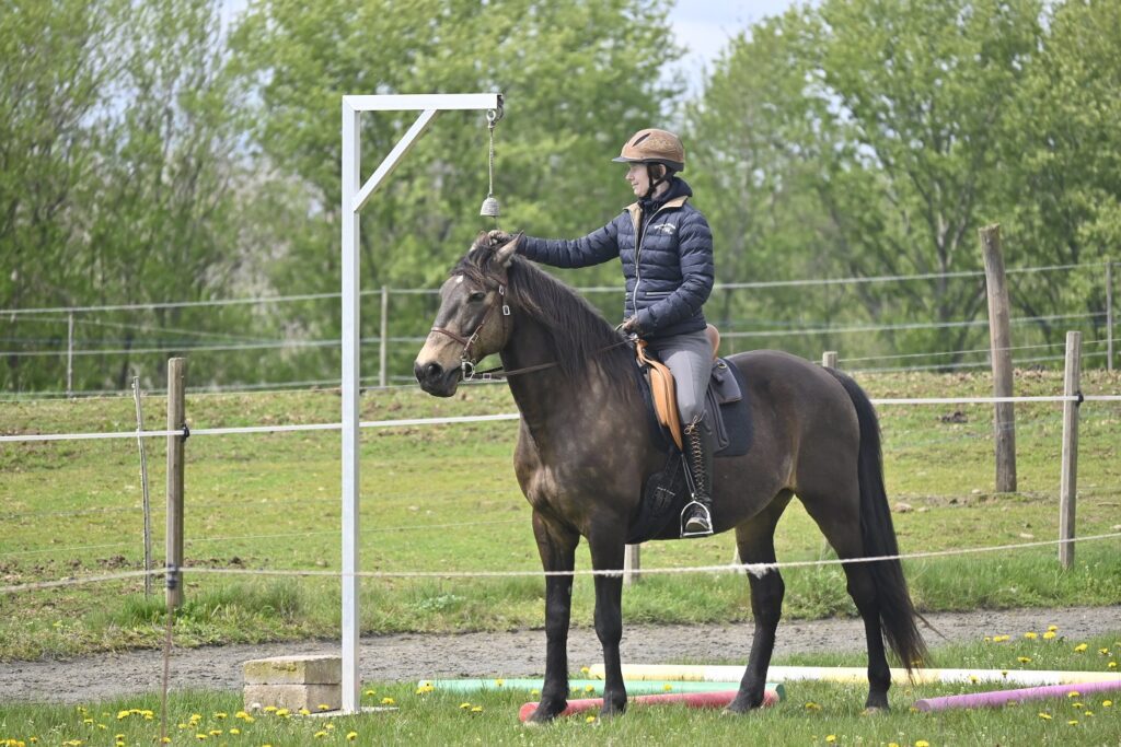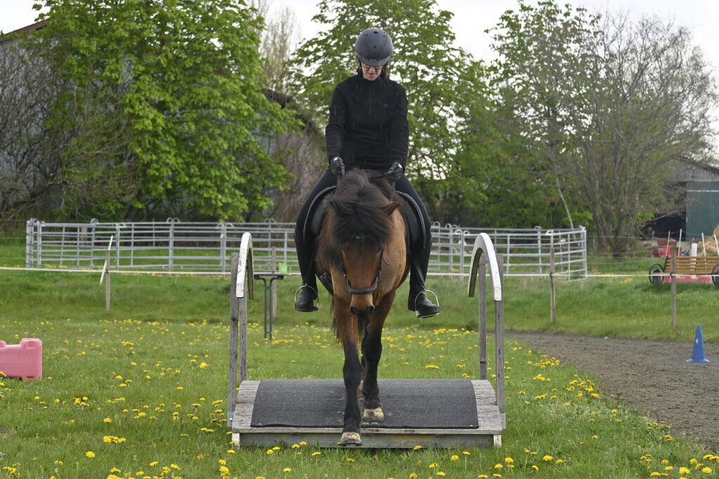 Nach einer leckeren Mittagspause ging es dann in 2er-Gruppen mit der Arbeit an den Hindernissen los. Denn der „Trail“ ist eines der Kernelemente der GWE und WE. Währenddessen erfolgten auch bereits Korrekturen an Rittigkeit und Gang. Denn die Pferde sollen zum einen mit Freude mitarbeiten und zum anderen korrekt geritten und gymnastiziert vorgestellt werden. Nicht nur der Tölt, auch alle anderen Gangarten sollen hierbei korrekt vorgestellt werden.