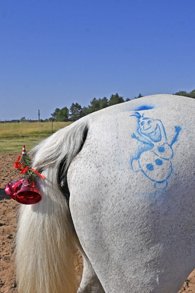 Anstelle der Teilnehmer erschienen lauter Wichtel, Grinche, Rudolfs und andere Rentiere, Weihnachtsfrauen und Weihnachtsmänner, Weihnachtsbäume, Zuckerstangen, Christbaumkugeln, Schneemänner, Knecht Ruprecht und sogar die Eiskönigin mit Gefolge samt Olaf trafen auf dem Gelände ein! Alle Teilnehmer waren ausnahmslos dem Motto entsprechend liebevoll dekoriert – egal ob Menschen, Pferde oder Fahrräder – nichts und niemand war ausgelassen worden. Einfach klasse!