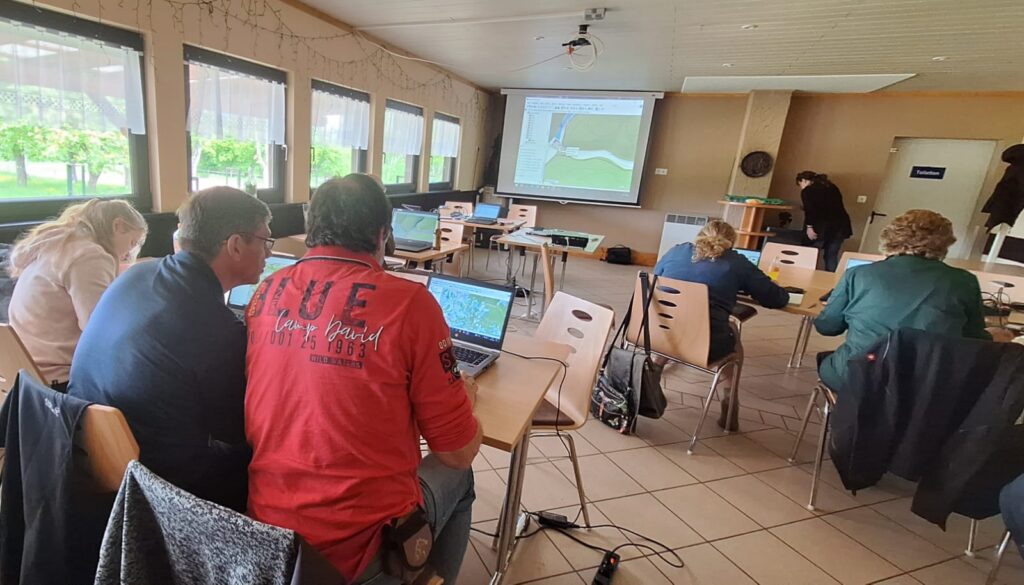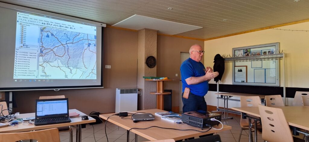 Um das zu erfahren, trafen sich 18 TN im Vereinslokal des Saarwellinger RuFV. Die Gastronomie war geöffnet und so war bestens für Speis und Trank gesorgt. Uwe Frank teilte seine Erfahrungen bei der Erstellung von Wanderreitstrecken an diesem Tag mit den Anwesenden aus der nahen Pfalz und dem Saarland. Gut vorbereitet half er auch jenen, die kaum bewandert waren im Umgang mit dem PC und /oder Navigationsgeräten. Auch für die „alten Hasen“ hatte er einige gute Tipps auf Lager, sei es bei der Erstellung der Strecke, der Speicherung oder auch der Übertragung auf die Endgeräte.