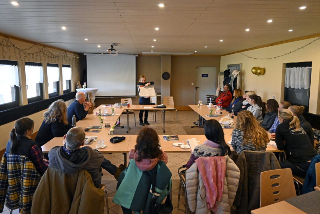 Als wir von unserer lieben Clubheimwirtin vorsichtig gefragt wurden, wann sie denn nun das Mittagessen für uns richten solle, hatten wir doch tatsächlich schon über 45 Minuten überzogen – ohne es zu merken! Kleinlaut kam von ein paar Teilnehmer „ich müsste auch mal ganz dringend wo hin, aber ich wollte auf keinen Fall irgendetwas verpassen! Es war alles so spannend und toll erklärt!“, „ja, mir geht es auch so“. Und so machten sich fast alle gleichzeitig nochmal kurz frisch, um dann beim Mittagessen das viele neue Wissen zu verarbeiten.