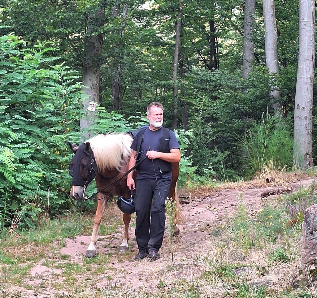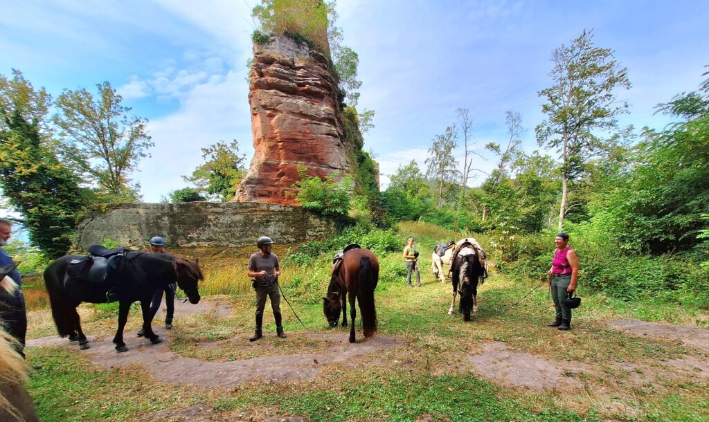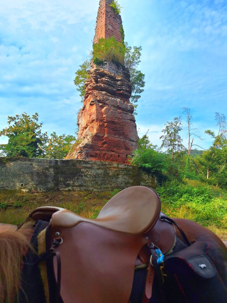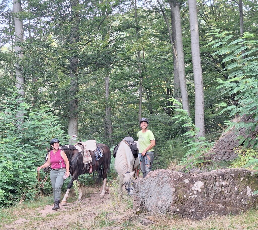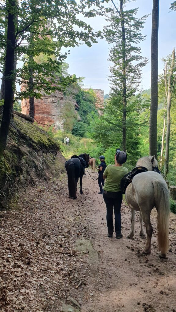 Am 3. Tag zog nur die Hälfte der Reiter los, die andere Hälfte wollte sich lieber am Pool lümmeln. Immerhin besorgten die Daheimgebliebenen feines Eis für alle. Die Reiter indes besuchten den Aussichtspunkt „Bayrisch Windstein“ genau auf der Grenze zu Frankreich auf einer 19km Tour.