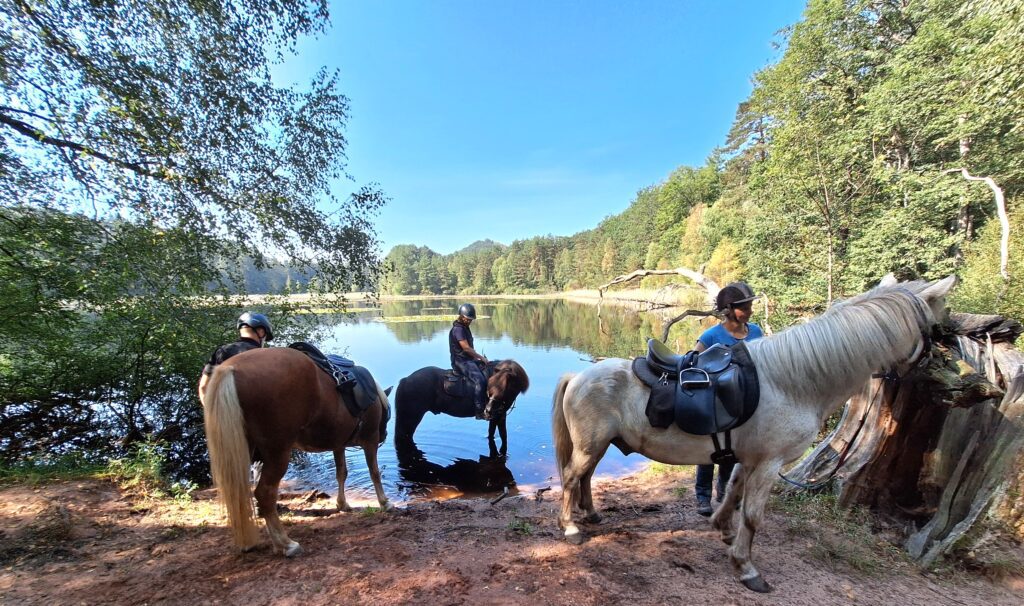 Am ersten Tag waren es 17km Reitstrecke ohne ein bestimmtes Ziel, dafür an sehr vielen Woogen (Seen) vorbei.