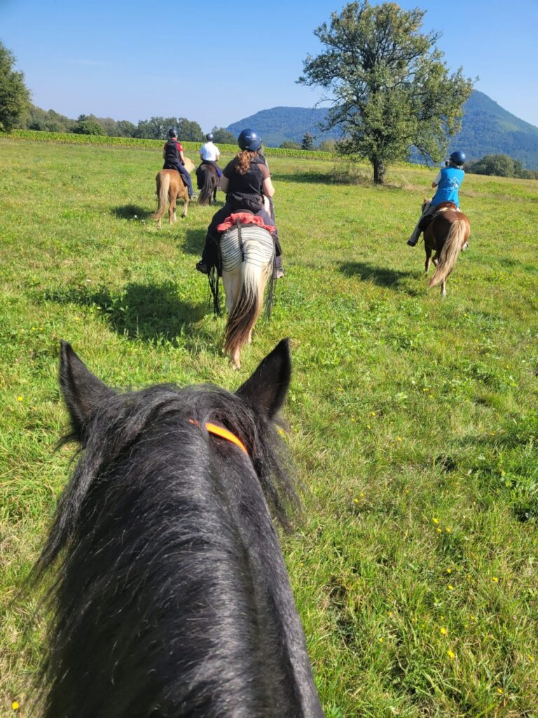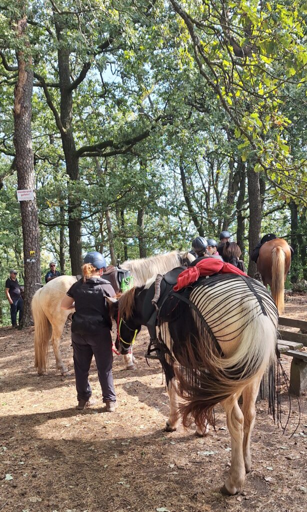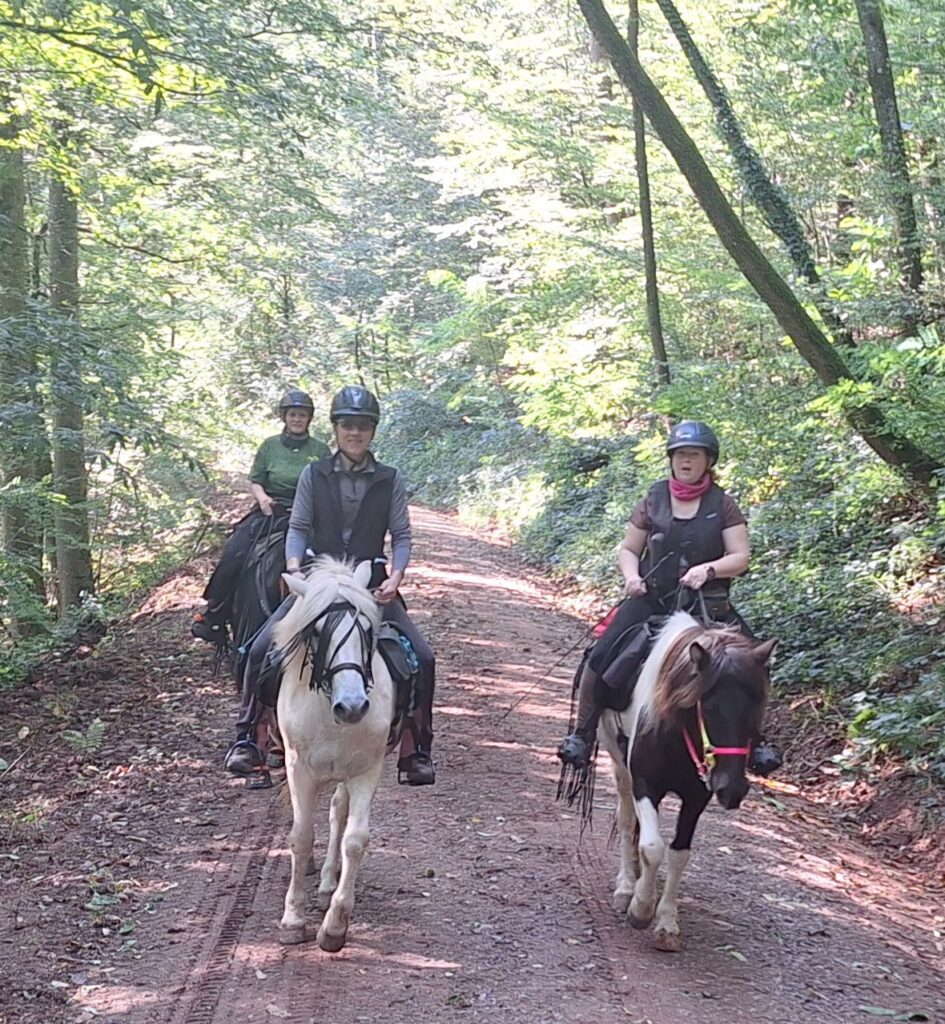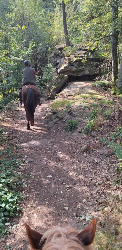 Entlang des Eußerbaches führte der erste Ritt an die nördliche Spitze von Eußertal. Entlang des Ziegelberges und des Langberges waren die Strecken leider ziemlich aufgeschottert und der Sommerfelsen bot nicht die erwartete Aussicht über den Pfälzer Wald. Franzosenkopf und Rotkopf waren schnell umrundet und der Weg führte am Gut Waldeck wieder zurück zum Vogelstockerhof. Die Pferde ruhten dann in großen Paddocks und genossen die Sonne des Altweibersommers. Für die Reiter klang der Tag in einer nahegelegenen Pizzeria aus.