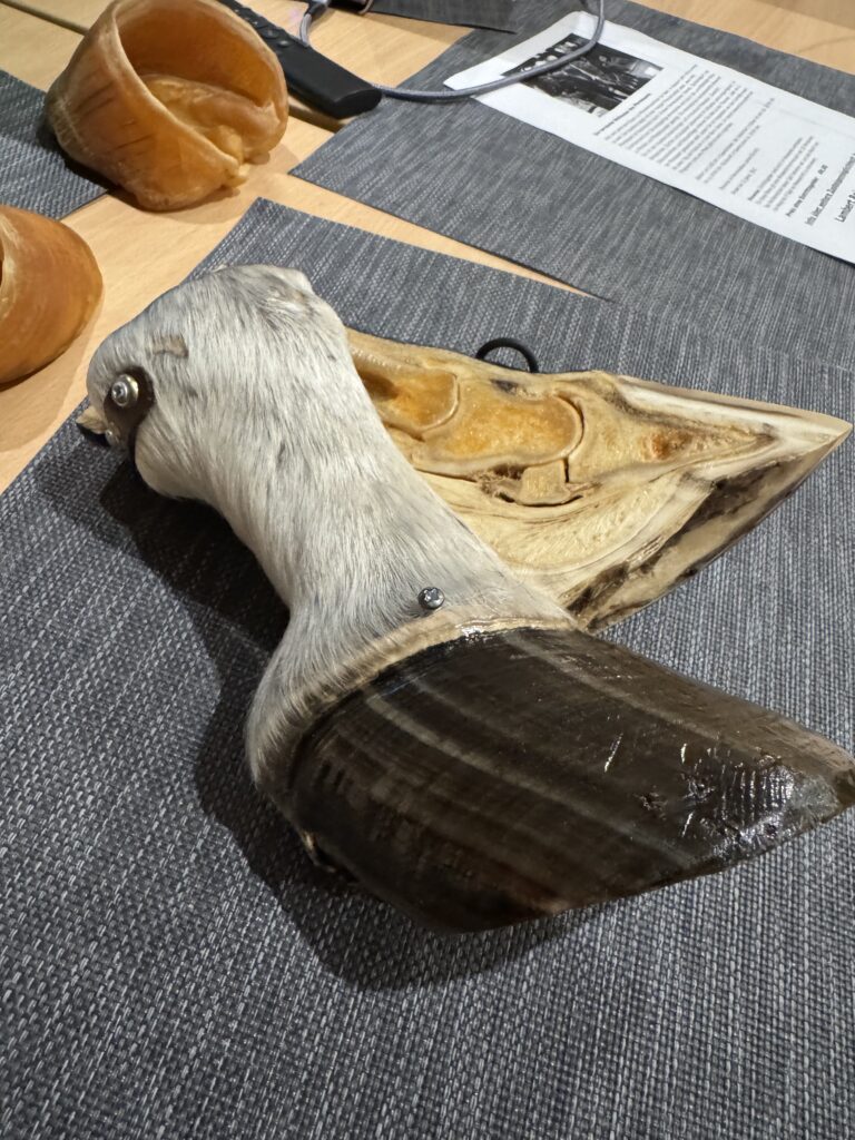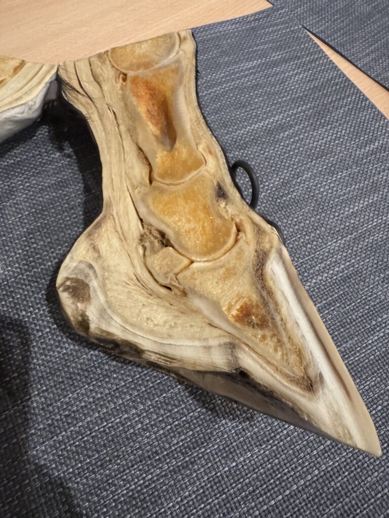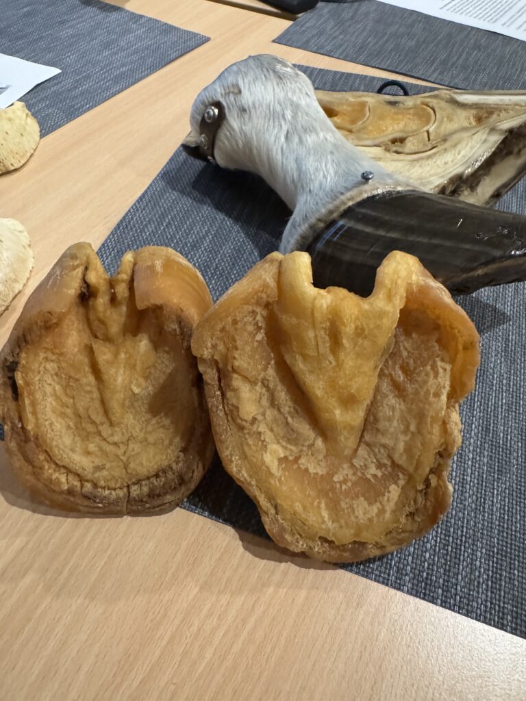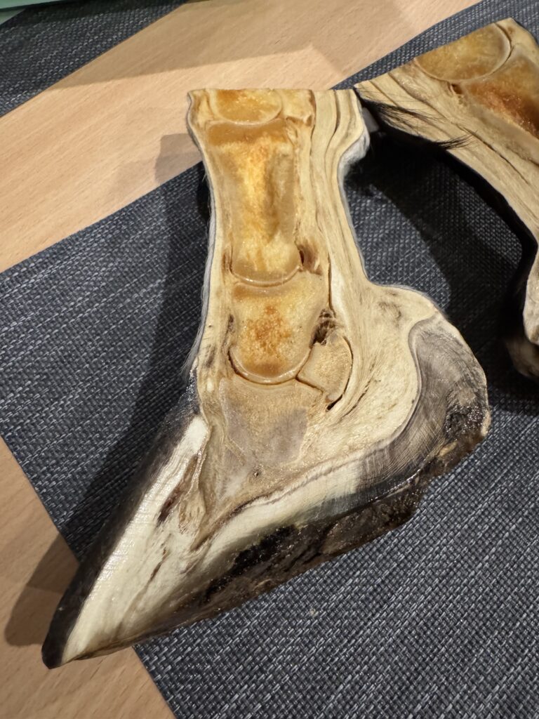 Referentin Bettina Micout, Hufbearbeiterin nach NHC, hatte Präparate mitgebracht und erklärte daran die Anatomie des Hufes. Schnell wurde klar, welche Veränderungen an den Hufstrukturen eine Hufrehe herbeiführt und wie schmerzhaft dies für die Pferde sein muß.