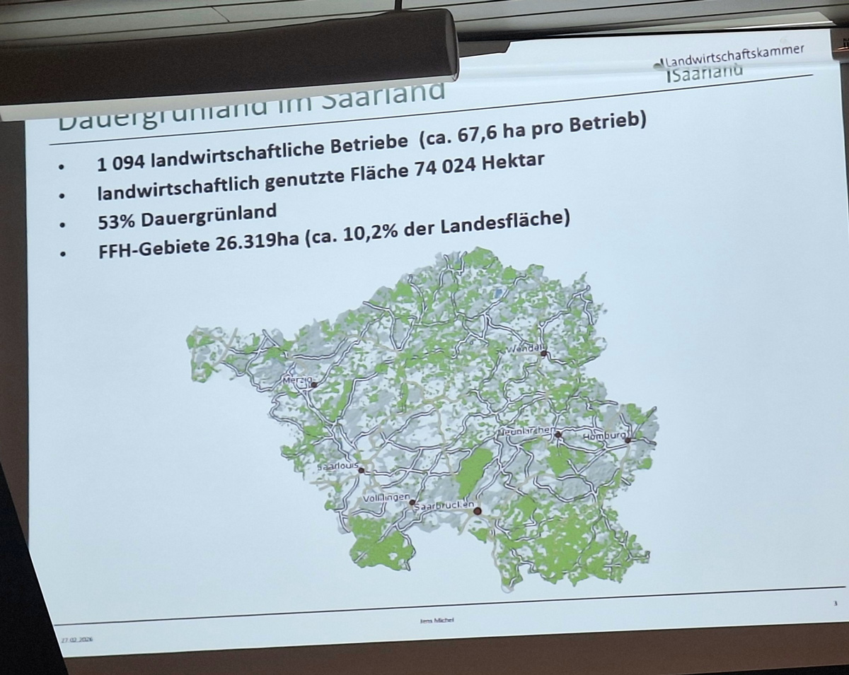 Das Thema „Artenreiches Grünland“ ist in der VFD-SAAR e. V. ein wichtiges Thema, denn es ist das Grundnahrungsmittel für die Pferde, sowohl im Sommer auf der Weide als auch im Winter als Heu. So freute sich der Vorstand, dass Jens Michel von der saarländischen Landwirtschaftskammer als Referent zu diesem Thema gefunden wurde. Zu Beginn erklärte er, dass es im Saarland einen höheren Anteil an Grünland gibt als im Bundesdurchschnitt. Und besonders erfreulich ist, dass viele schützenswerte Grünflächen vorhanden sind, die besonders artenreich sind. Ca. 74024 Hektar werden landwirtschaftlich genutzt und 10,2 % dieser Fläche sind FFH-Flächen (Fauna-Flora-Habitatgebiete), also Schutzgebiete in Natur- und Landschaftsschutz.